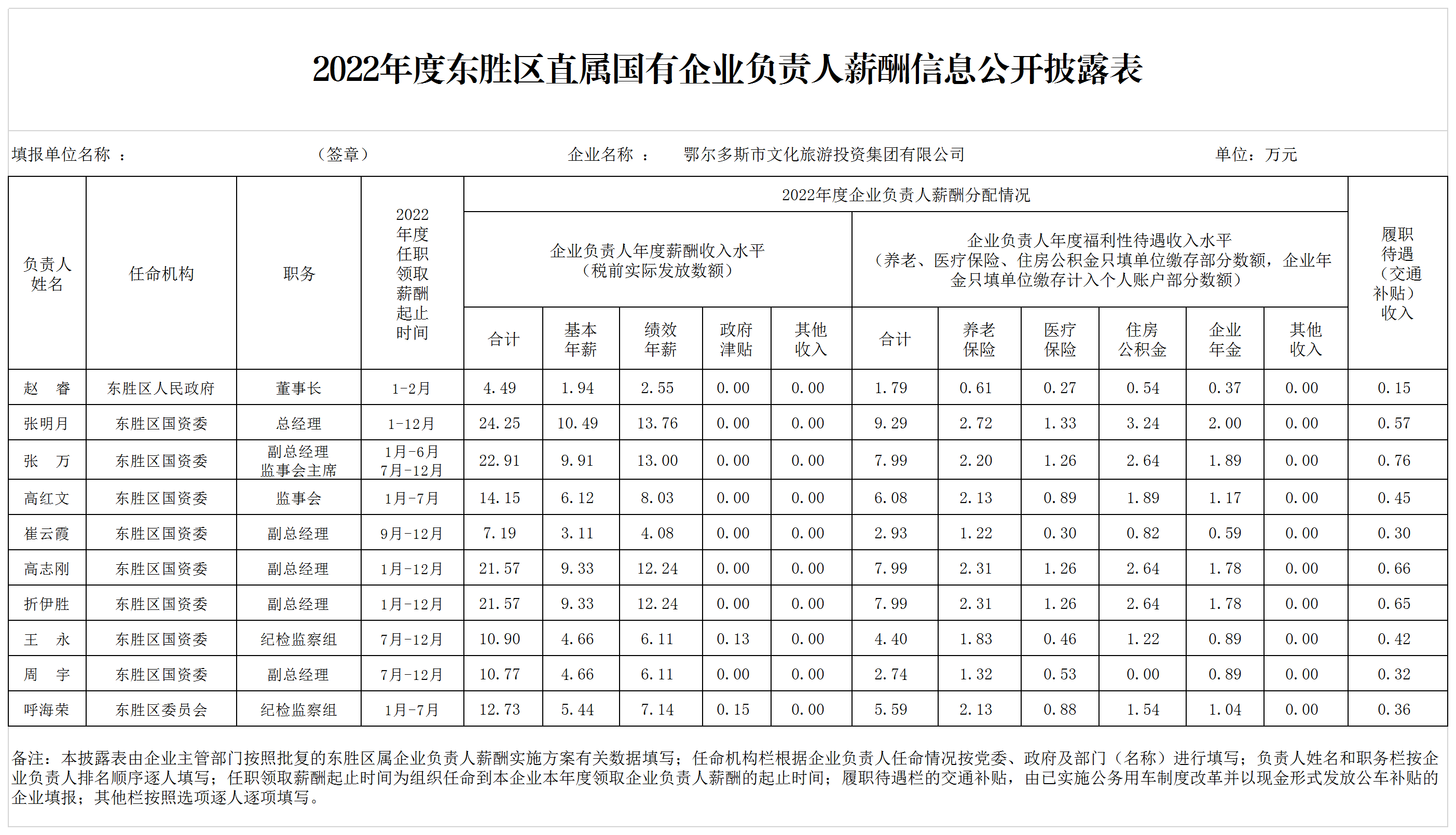 2022年度東勝區(qū)直屬國(guó)有企業(yè)負(fù)責(zé)人薪酬信息公開(kāi)披露表